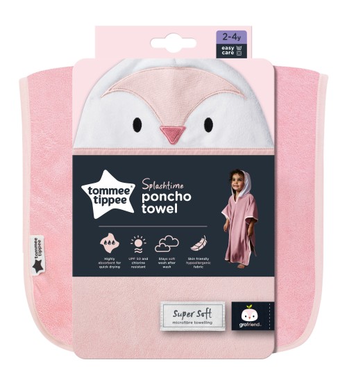 Halat de baie tip Poncho Tommee Tippee, (2-4 ani), Pinguinul Penny, Roz