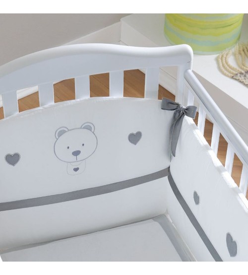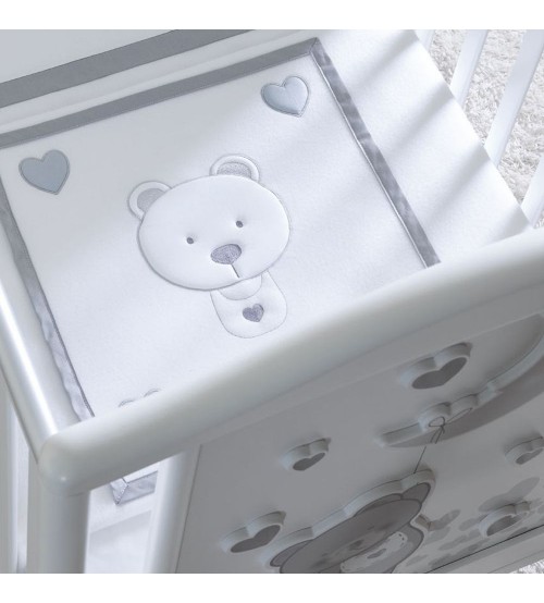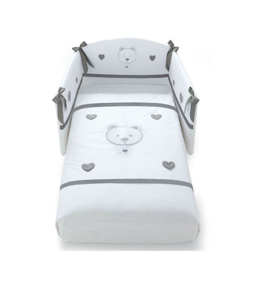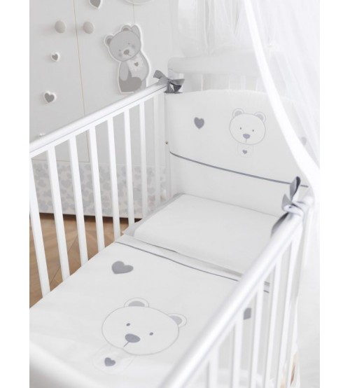 Setul de pat din 3 piese este ideal pentru patutul de bebelusi. Liniile moderne si culorile elegante sunt cea mai buna alegere pentru a oferi copilului dumneavoastra o atmosfera senina si relaxanta. Setul de patut este infrumusetat cu broderii cu ursulet si inimioare si este compus din: