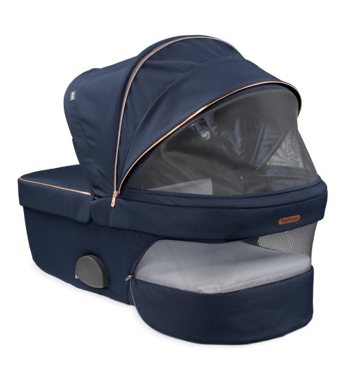Sunt atat de multe lucruri de transportat chiar si in timpul unei plimbari! Cosul spatios, usor de accesat, are elemente care il rigidizeaza in partea de jos. Finisajele vizibile, fac plimbarea de seara mai sigura.