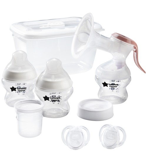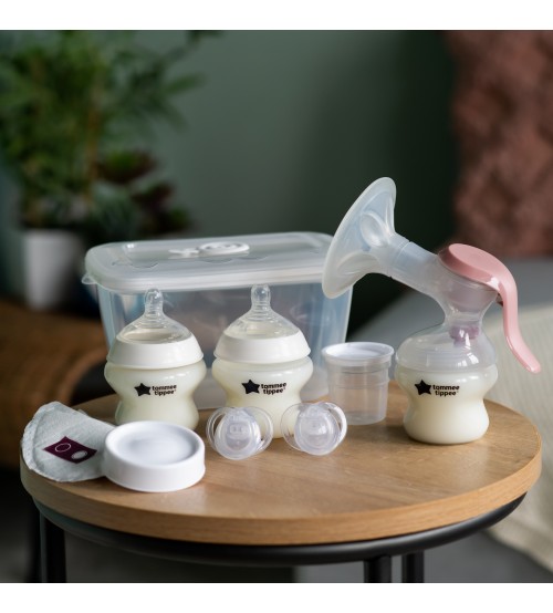 Set de pornire pentru alaptare Tommee Tippee Made for Me 2022: pompa de san manuala si accesorii, 0 luni +