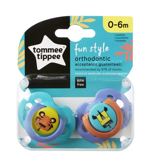 2. Set Suzete Ortodontice de Zi FUN, Tommee Tippee, 0-6 Luni, 2 buc, Tigru / Rinocer